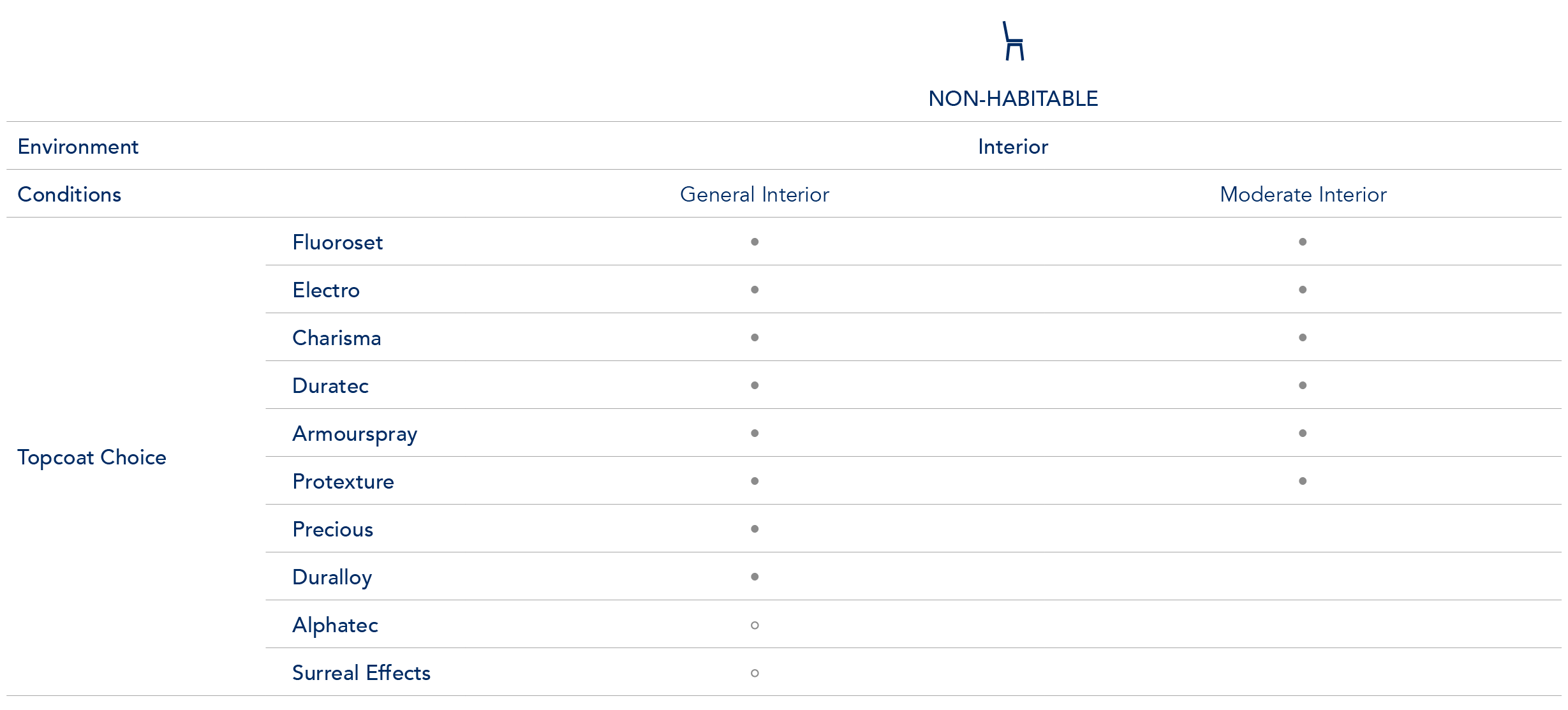 2. Electro, Charisma, Duratec, Armourspray and Protexture, are only suitable for environments >10m from the high tide line.