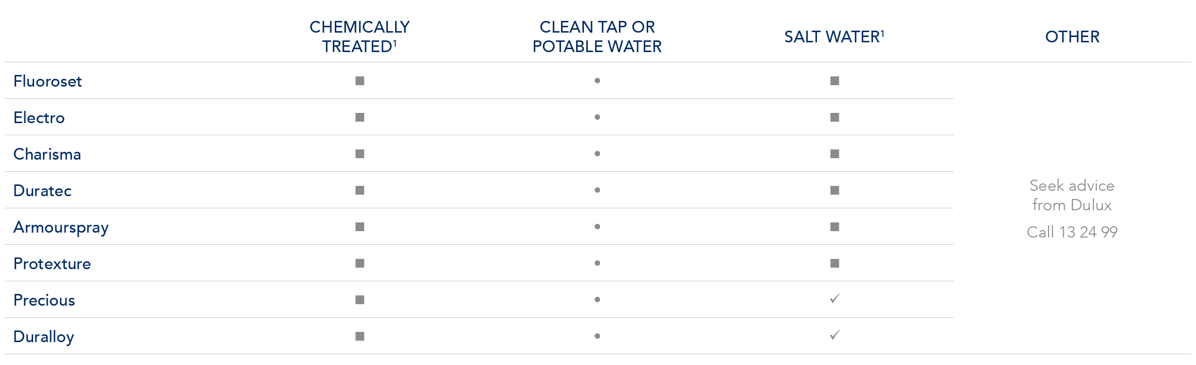 1. Fluoroset may be suitable in locations <10m from the high tide line e.g. harbours (contact Dulux for advice).