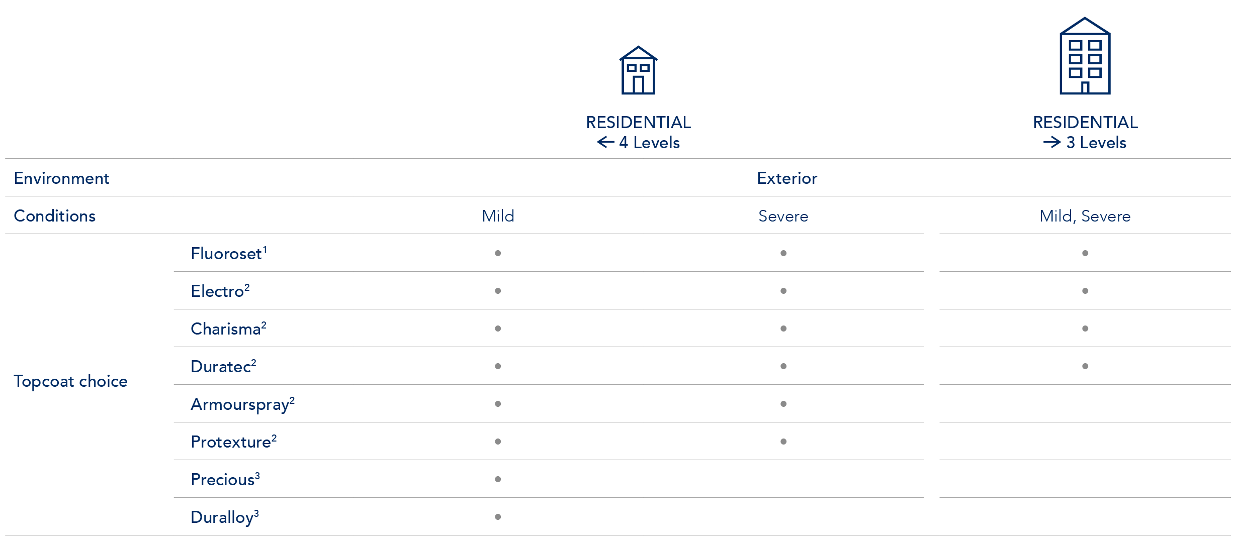 2. Electro, Charisma, Duratec, Armourspray and Protexture, are only suitable for environments >10m from the high tide line.