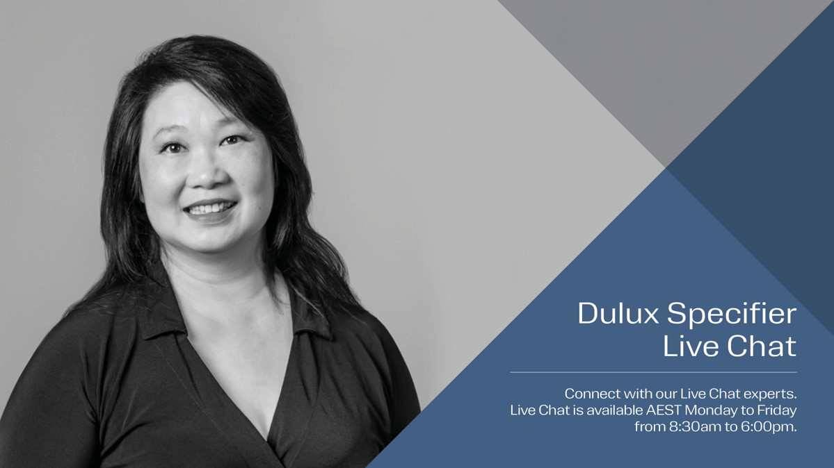 Dulux Specifier Live Chat you can ask any question you have about specifying products across the Dulux range. Available Monday to Friday from 8.30am to 6.00pm AEST, your Live Chat team member can recommend the right products for your project, provide technical information or even check product performance queries with the Dulux Technical Team.