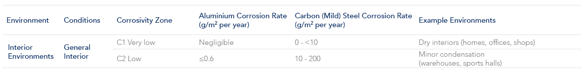 Use the following table which references AS2312.1, AS 4312 and ISO 9223 to identify the environment, conditions and atmospheric corrosivity categories.