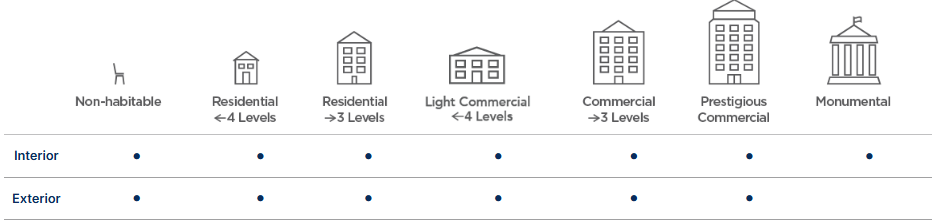 Use the following table to help identify where Duratec can be applied on aluminium projects, the system required and the Dulux Alumi Shield™ warranty level available. Refer to the conditions information to determine the environment that your project will be exposed to.