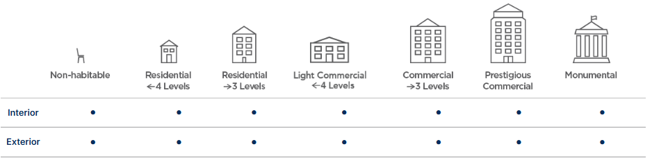 Use the following table to help identify where Fluoroset can be applied on aluminium projects, the system required and the Dulux Alumi Shield™ warranty level available. Refer to the conditions information to determine the environment that your project will be exposed to.