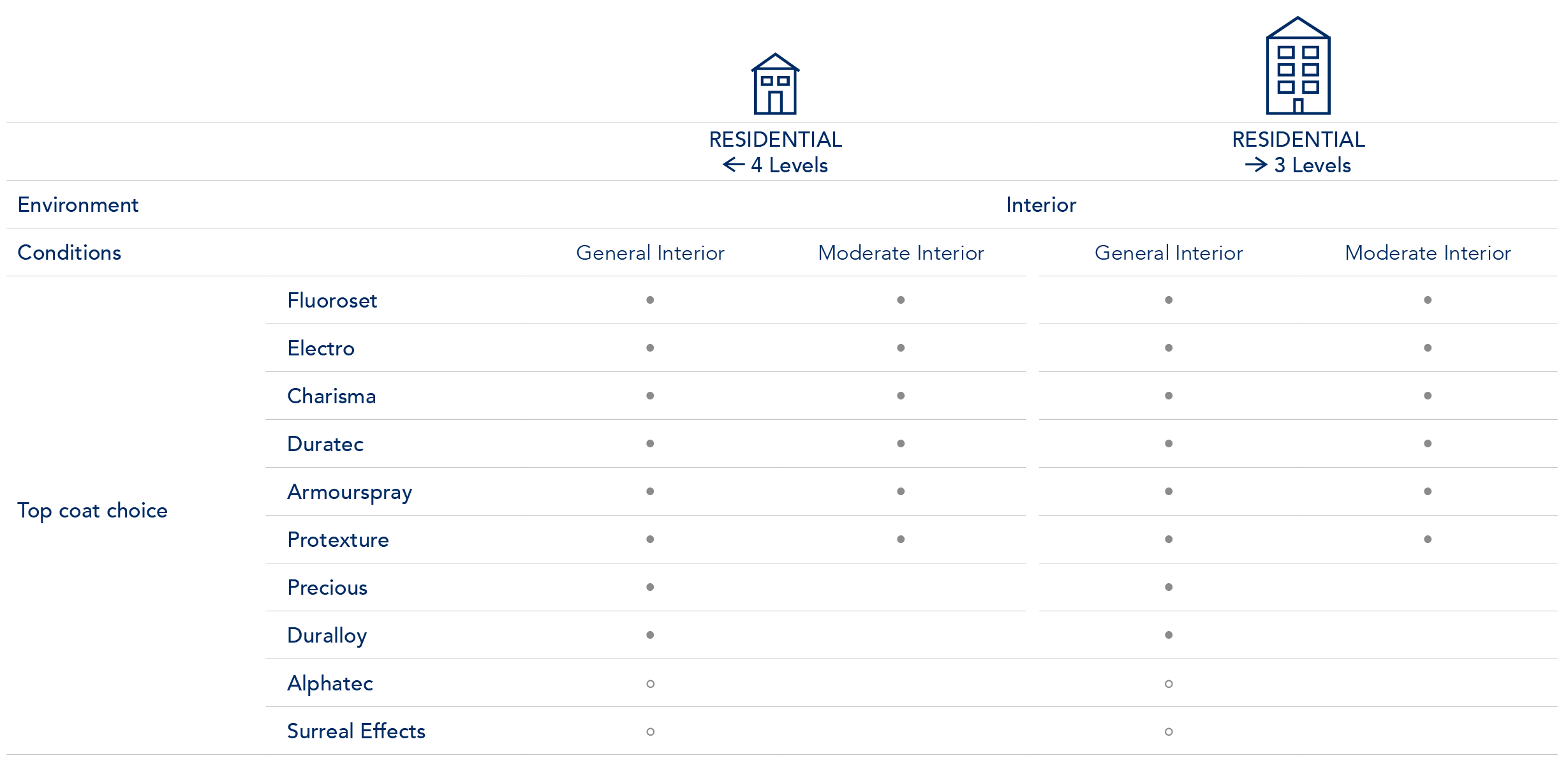 2. Electro, Charisma, Duratec, Armourspray and Protexture, are only suitable for environments >10m from the high tide line.