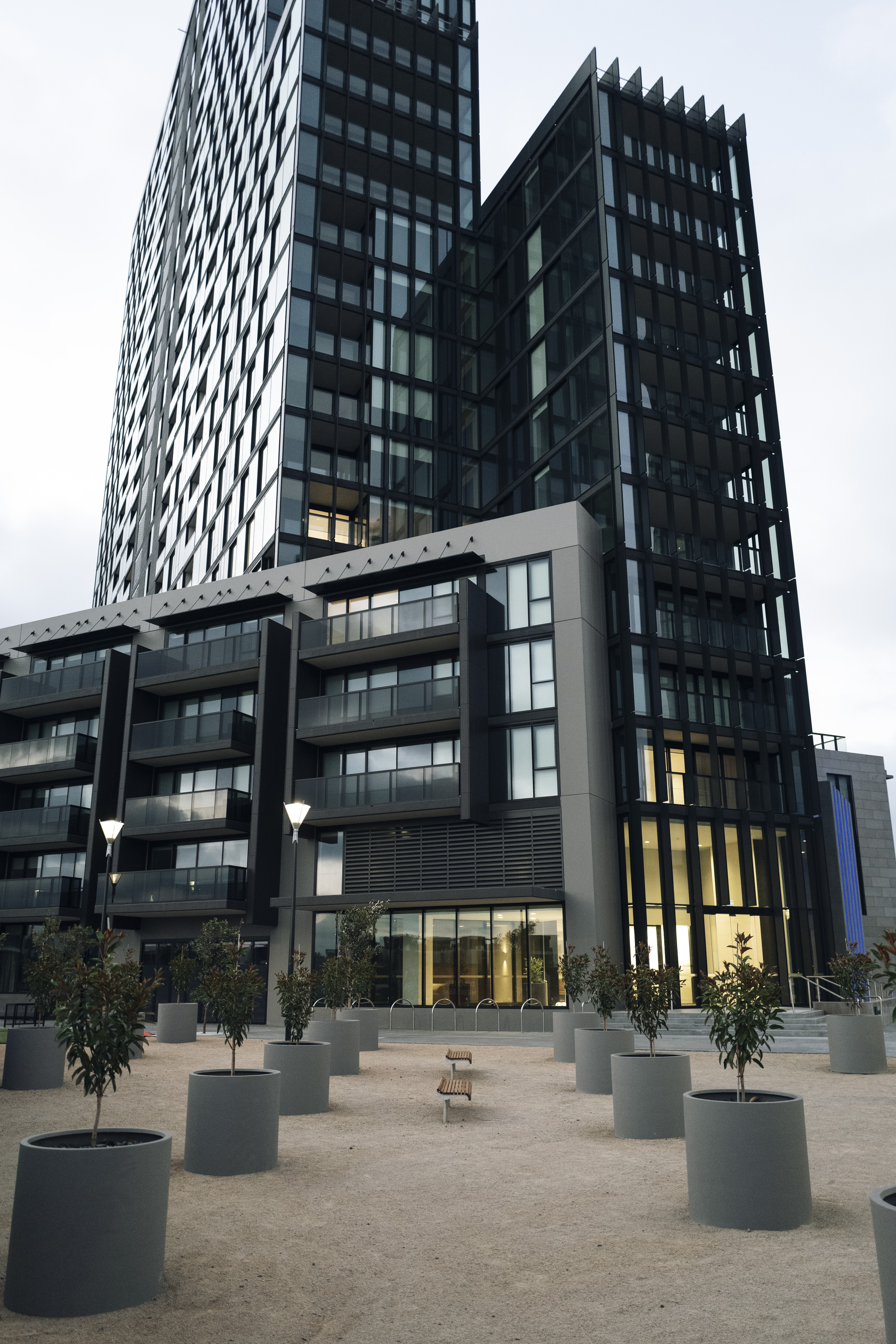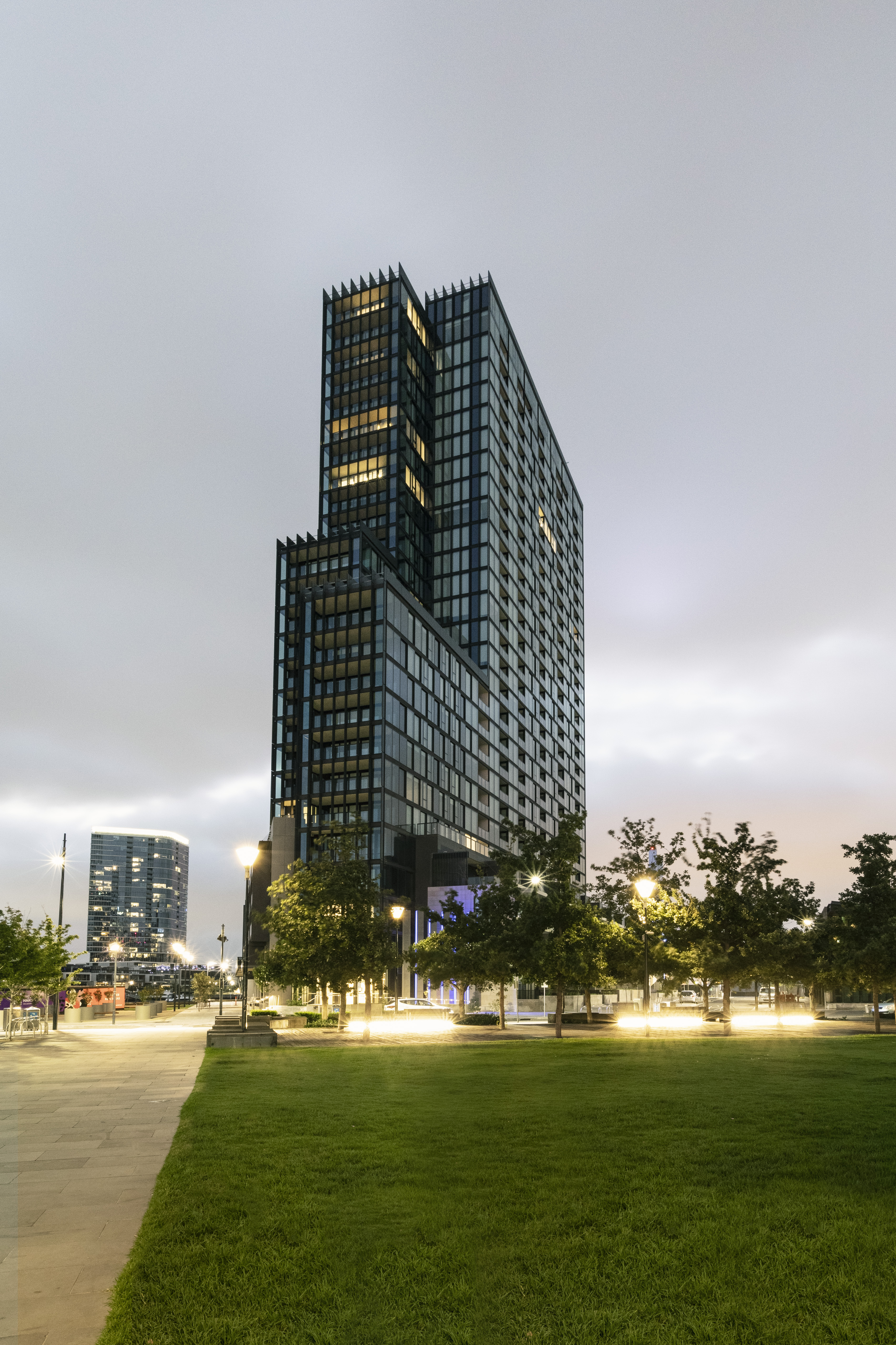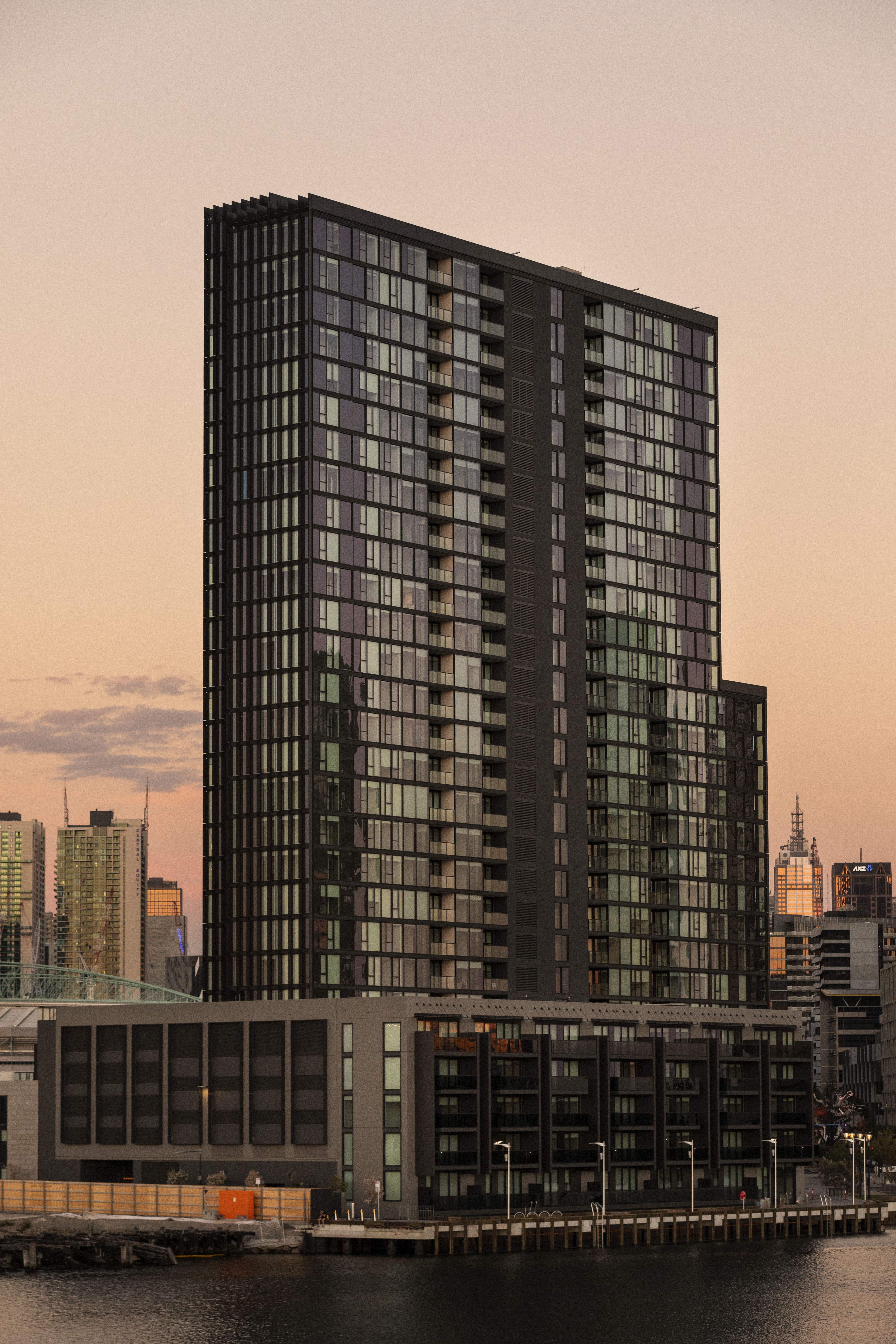 The 90 metre tower designed by Bates Smart is located within the Victoria Harbour Precinct at the junction of Bourke and Collins Streets in Melbourne.