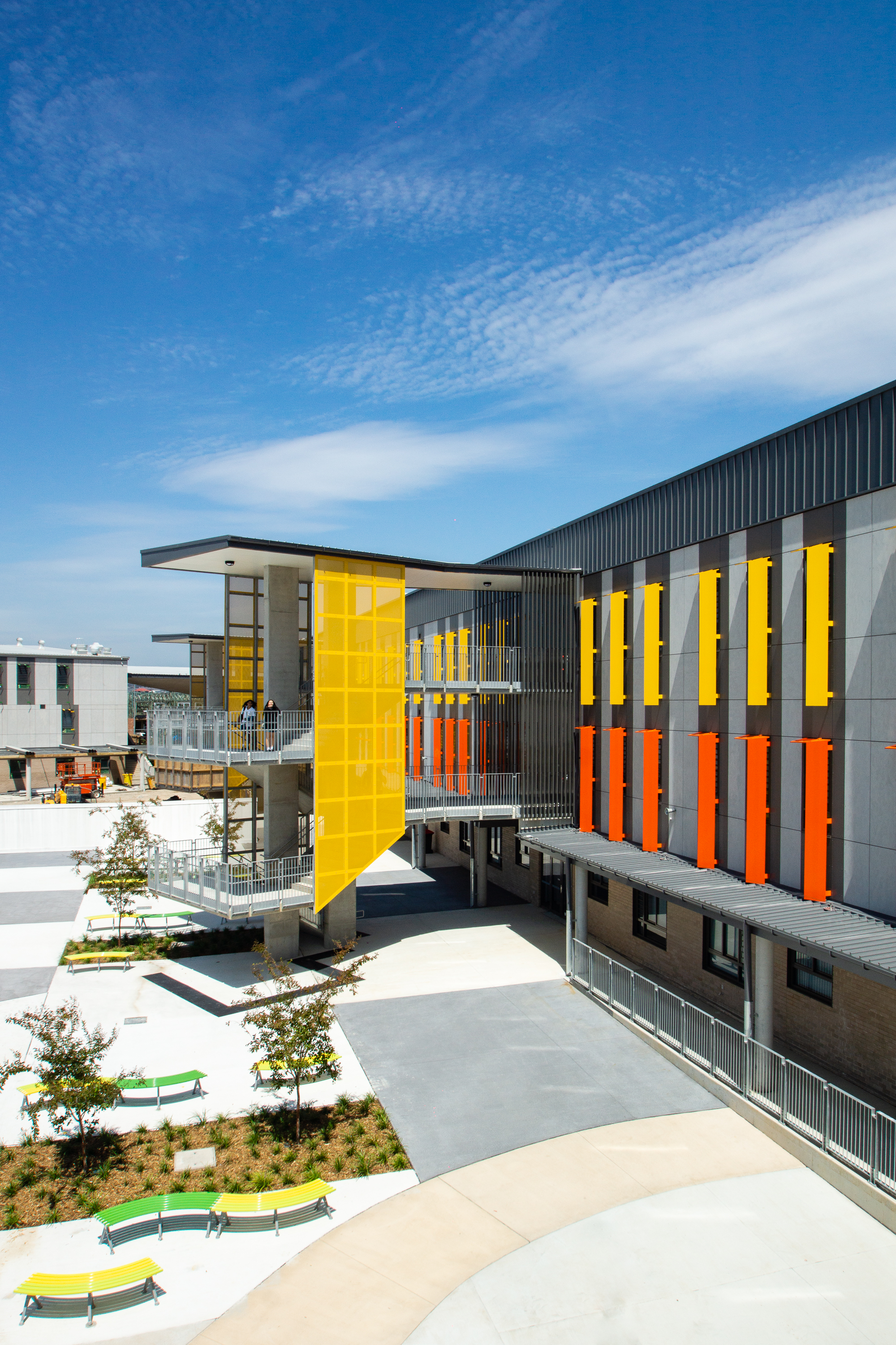 Oran Park High School, a finalist in the 2020 Dulux Colour Awards, is a large purpose built public High School for the growing western Sydney suburb of Oran Park.