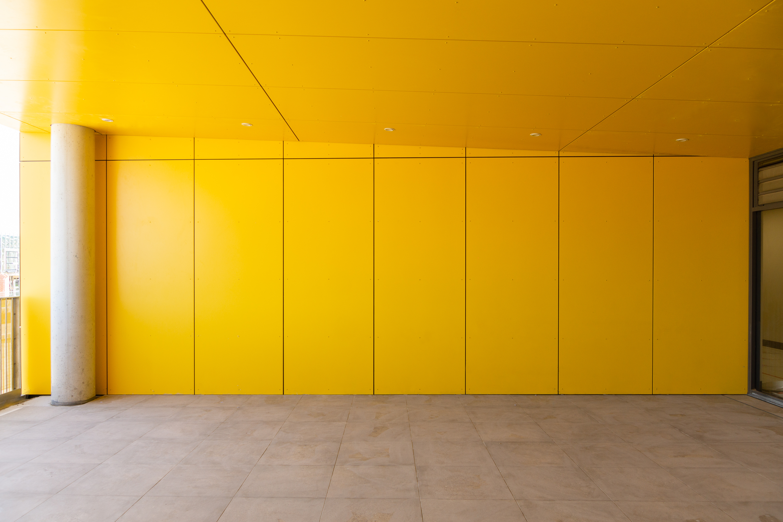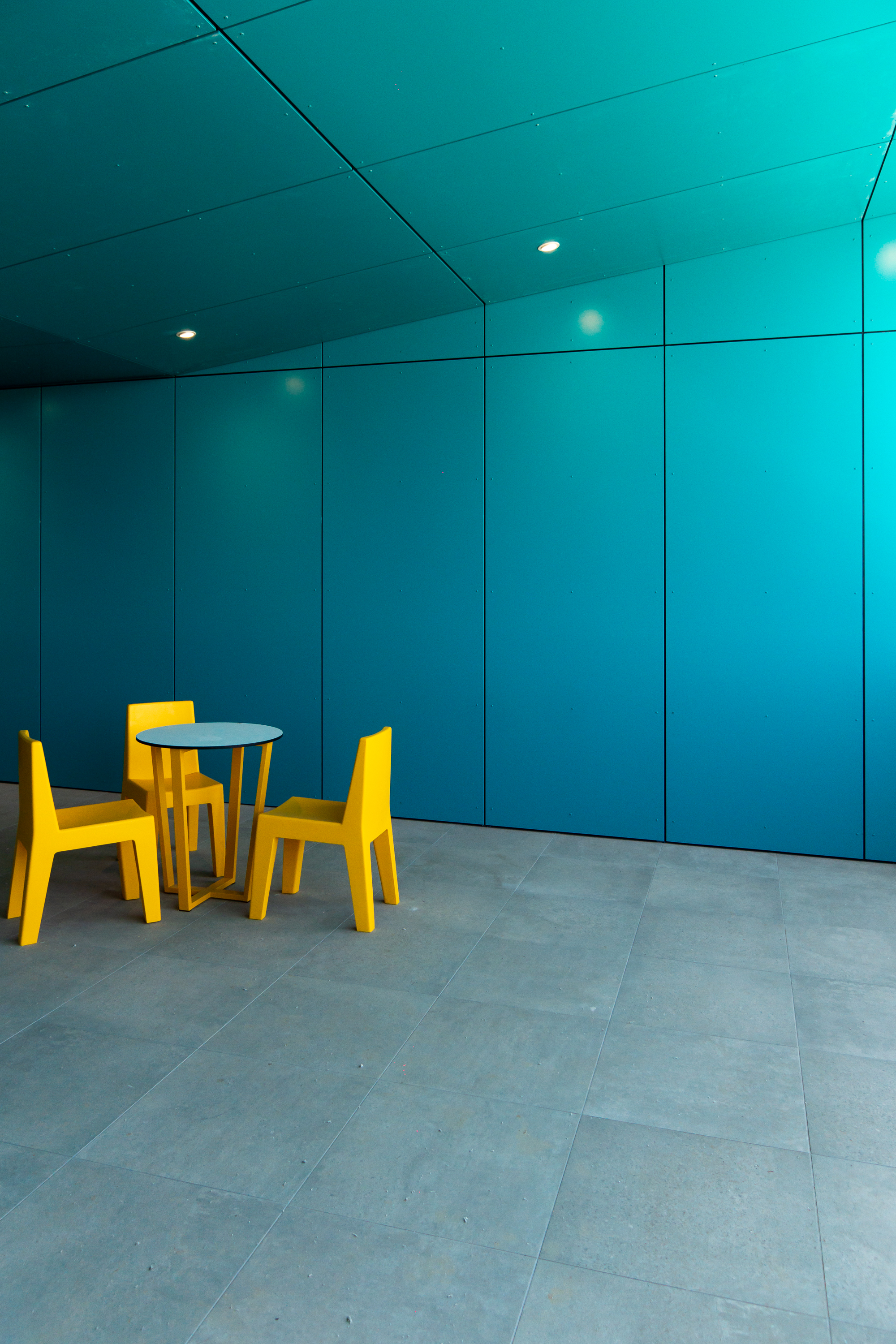 Dulux Duratec Intensity powdercoat colours were used on perforated sunscreen elements and other external metalwork, punctuating and complementing the dynamic network of colours. Colour has played an important part in the schools way-finding strategy, with yellow acting as a key identifier of points for movement and entry on the site, an important feature given the large scale of the school.