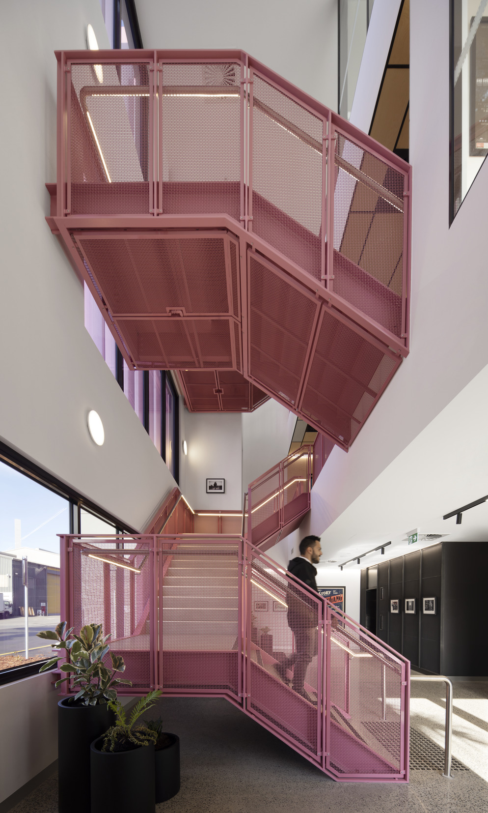 The colour used for the aluminium louvres, Pink Pearl Gloss, was specially developed by our CustomColour™ service and helped ensure a seamless branding experience throughout the building’s interior and exterior.