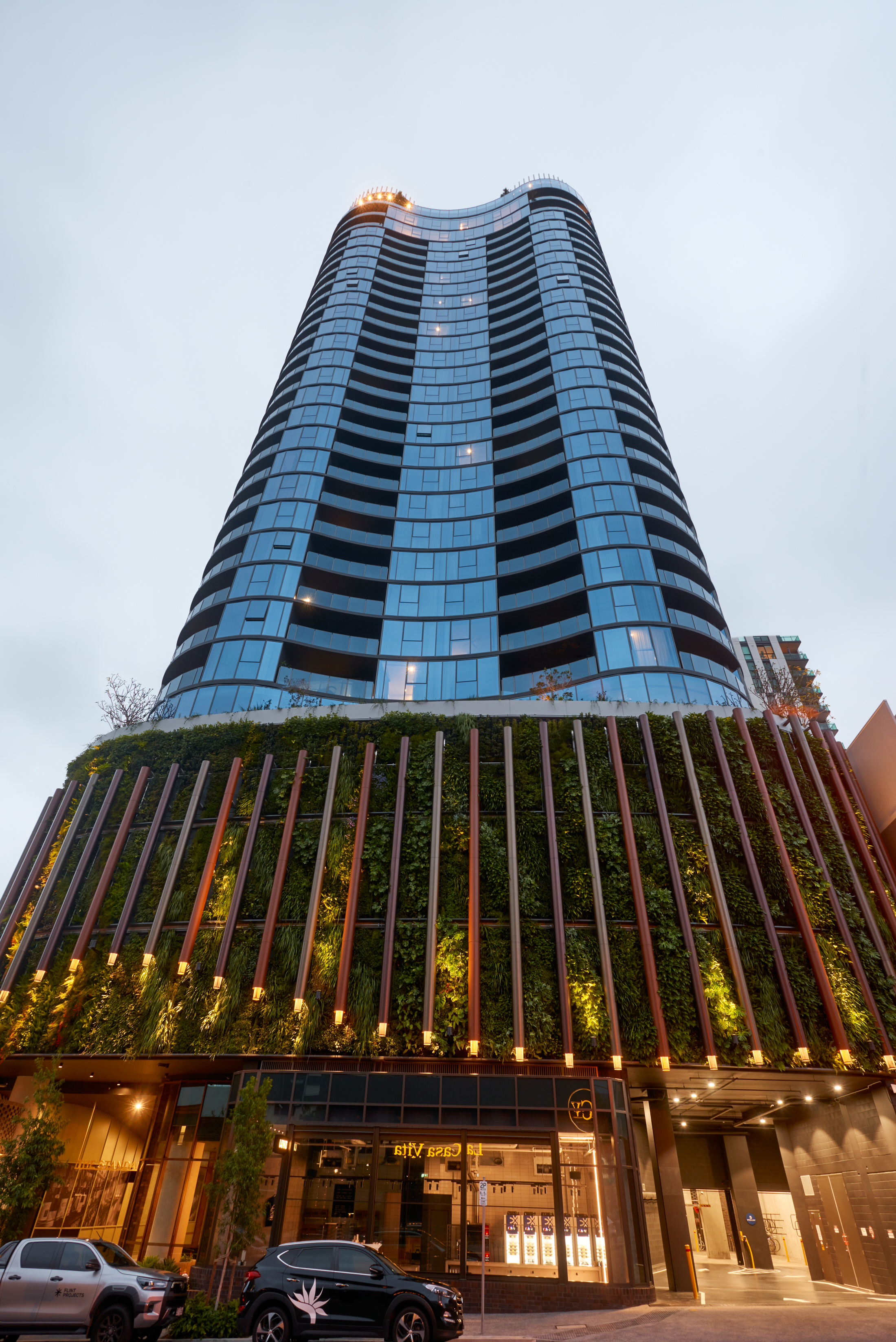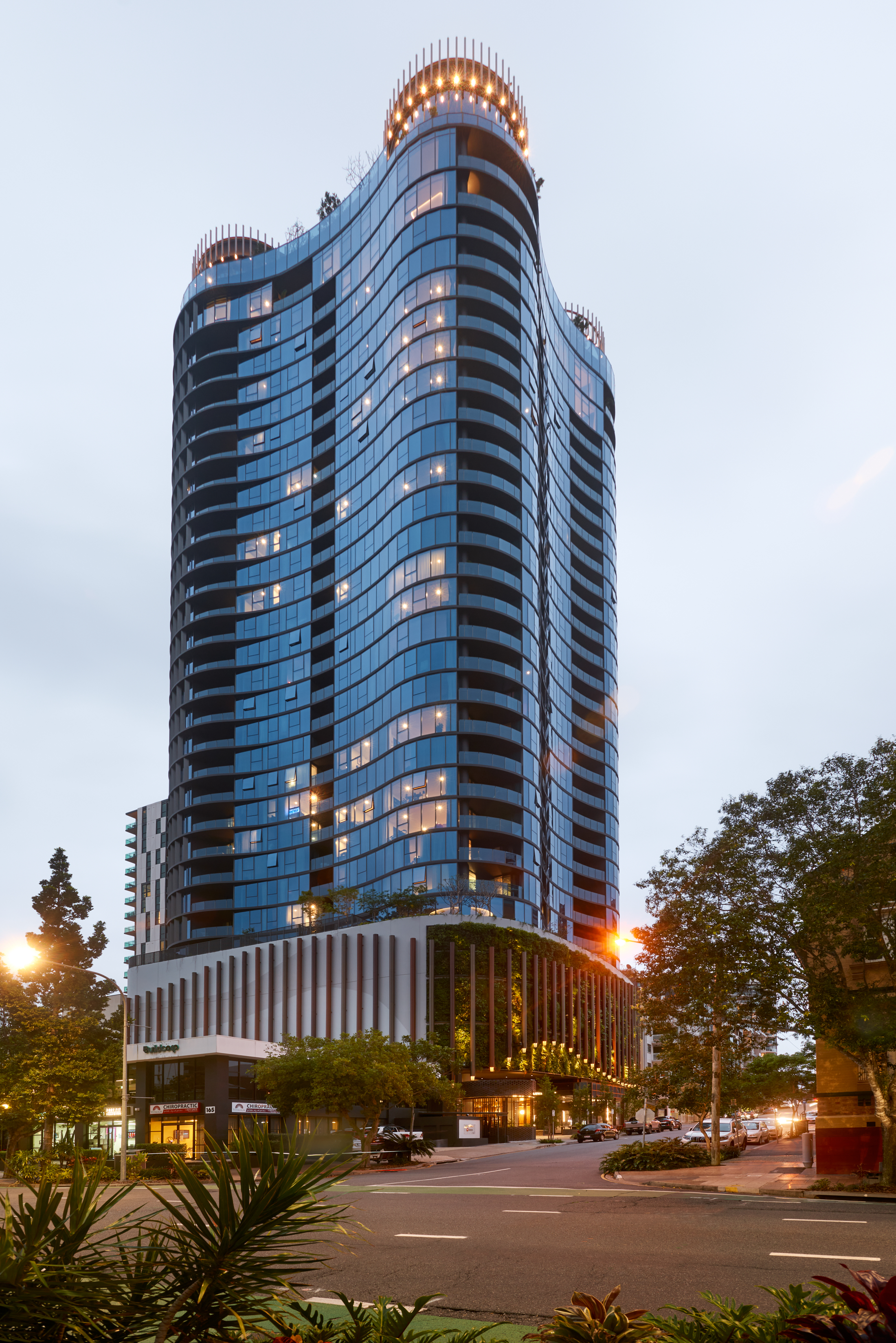 The Standard Apartments, located in South Brisbane, Queensland, is a stunning cylindrical-shaped apartment tower featuring colours from the Electro® and Duratec Elements® powder coat collections.
