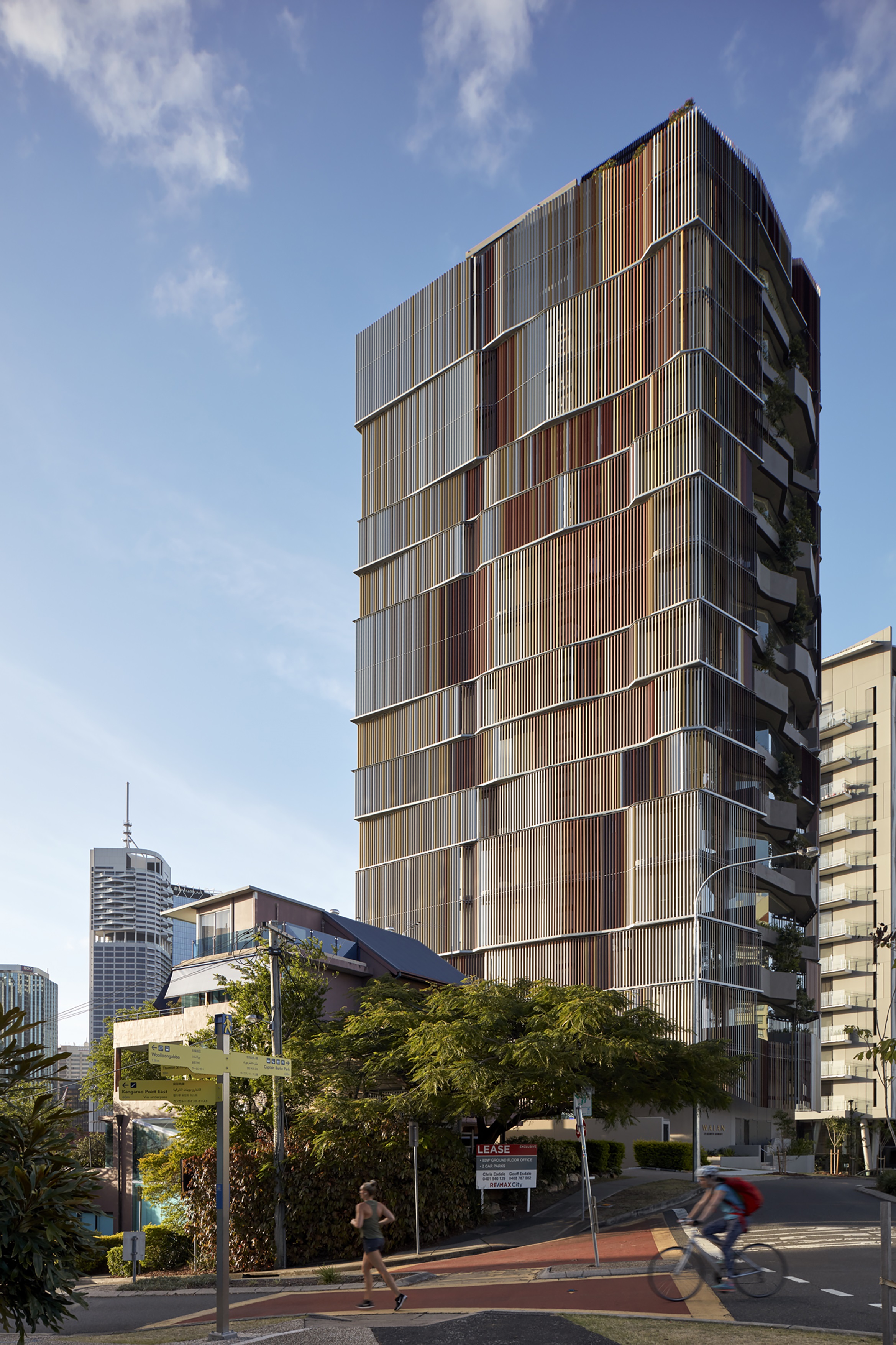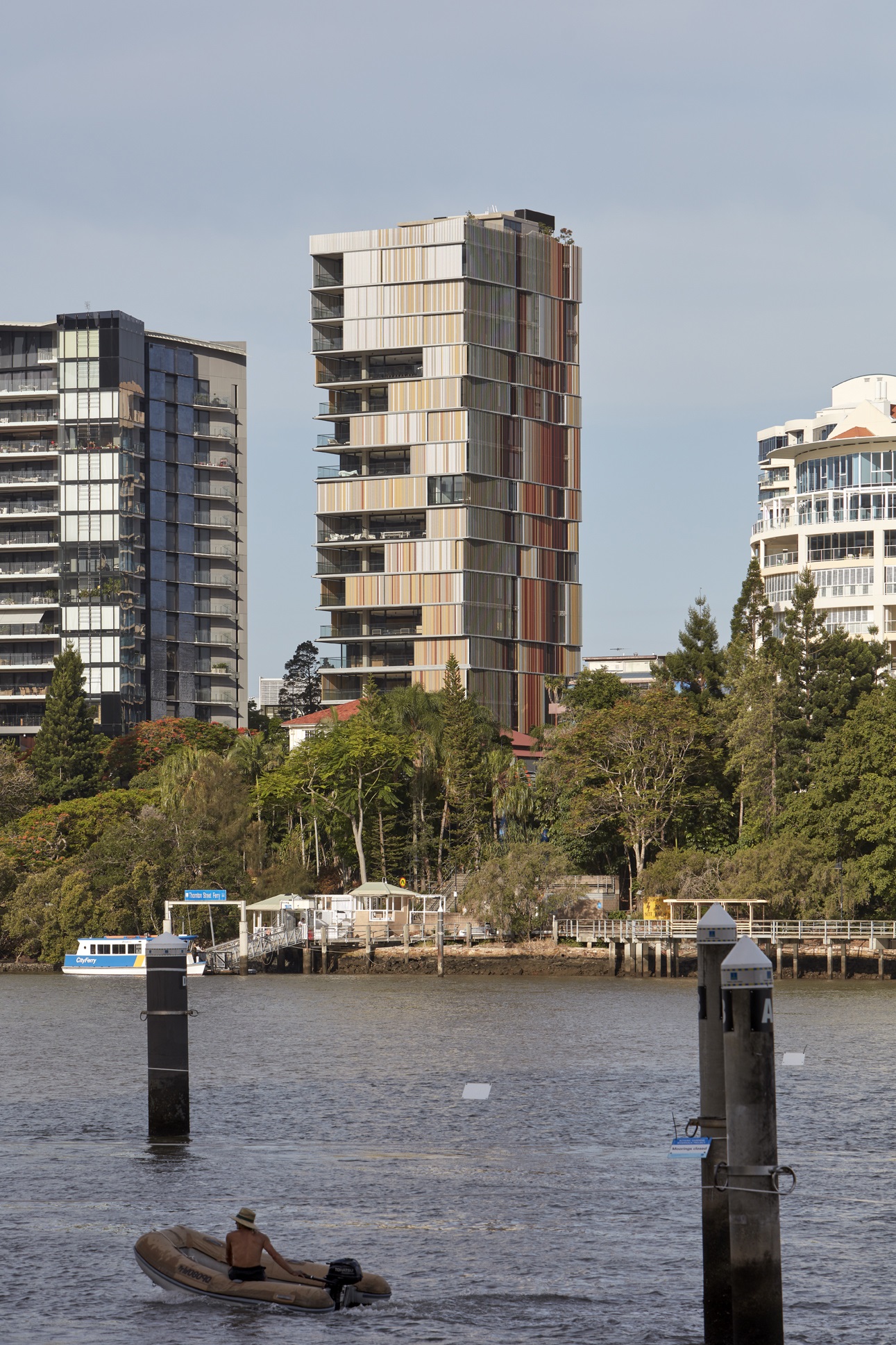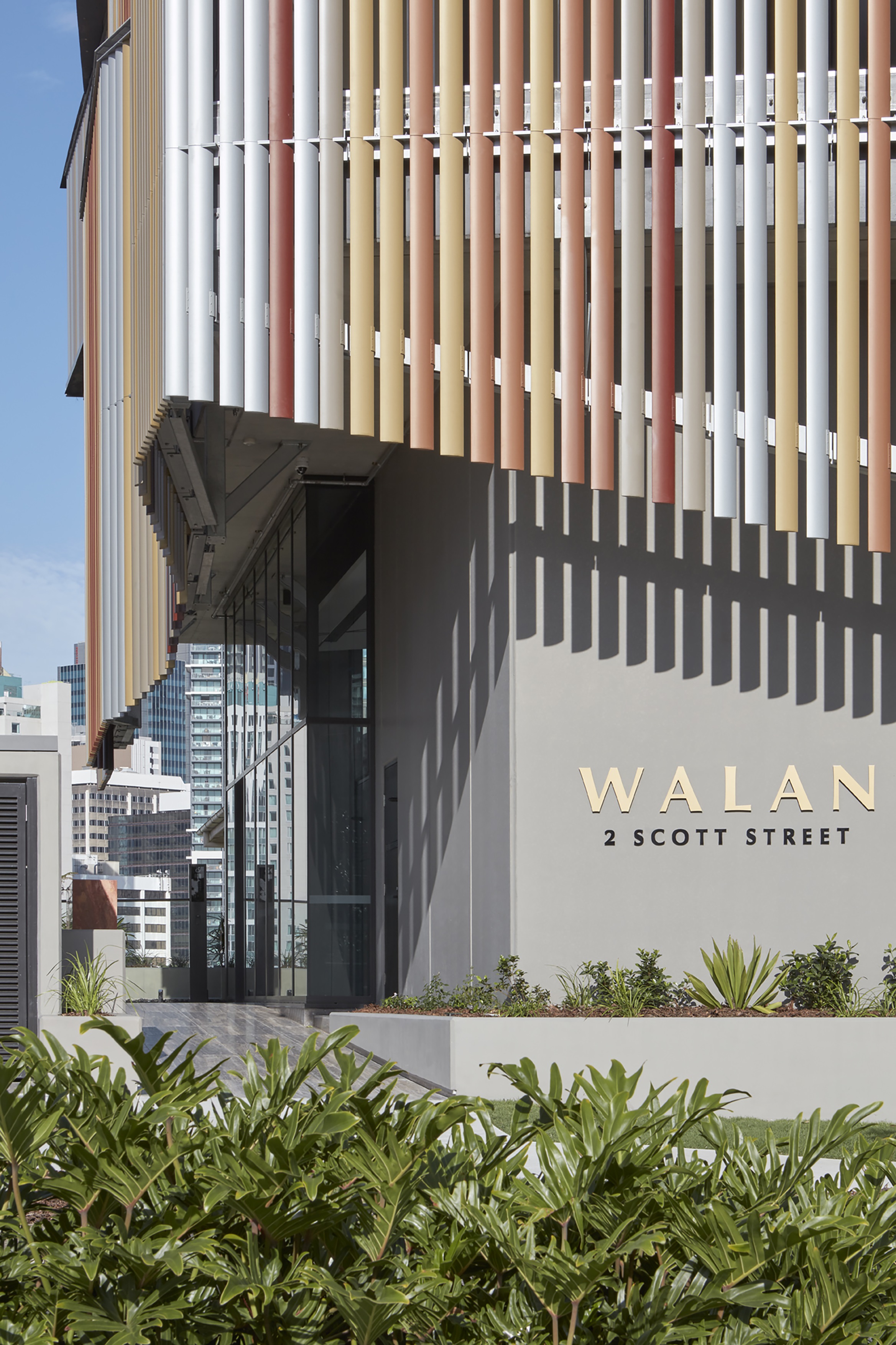 The Bureau Proberts designed Walan apartments, perched along the clifftop of Brisbane’s Kangaroo Point, used Dulux Electro® Powder Coatings to protect the stunning louvred façade, but importantly to also complement the engrained colour pallet of the Kangaroo Point rock face.