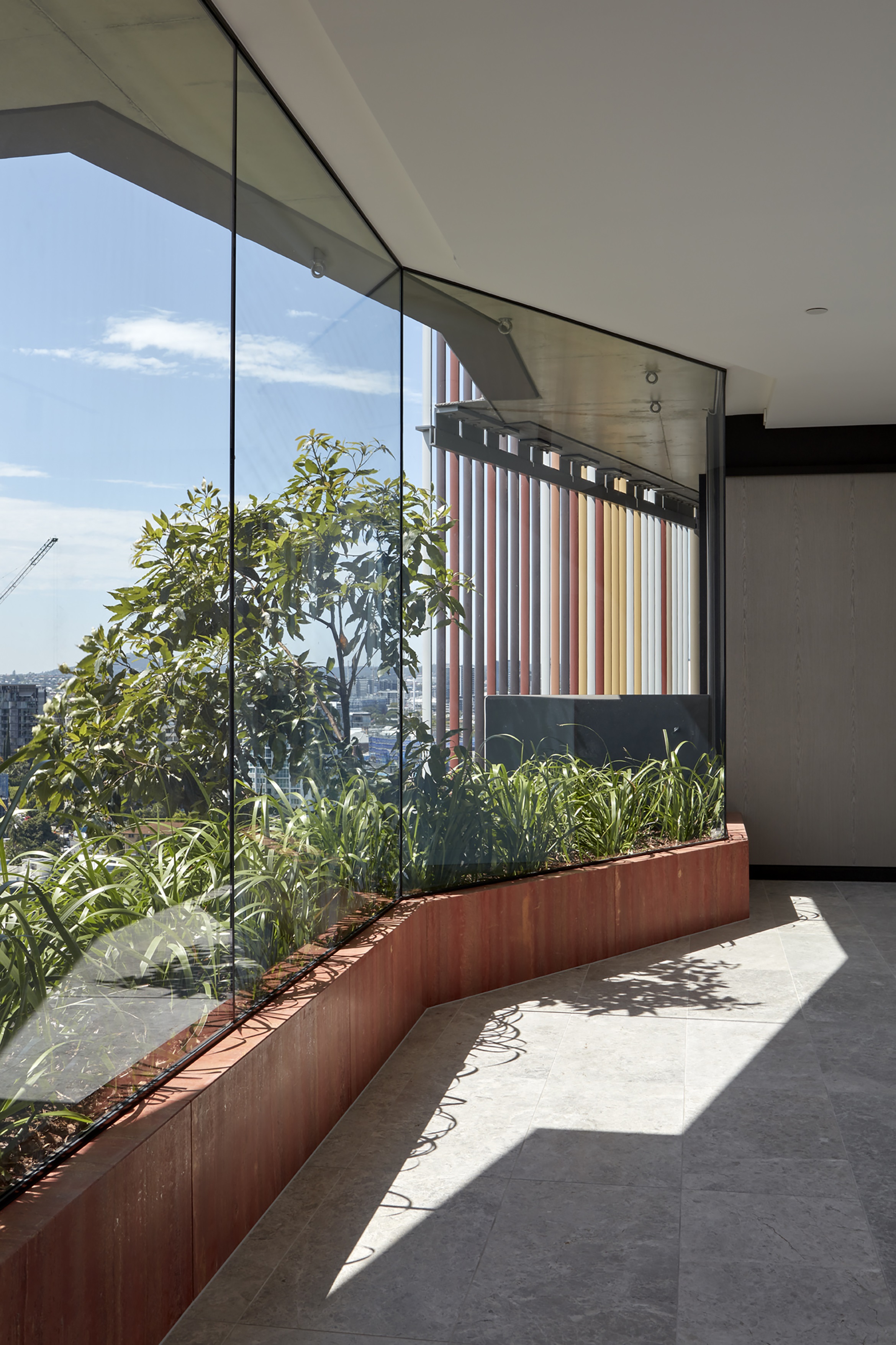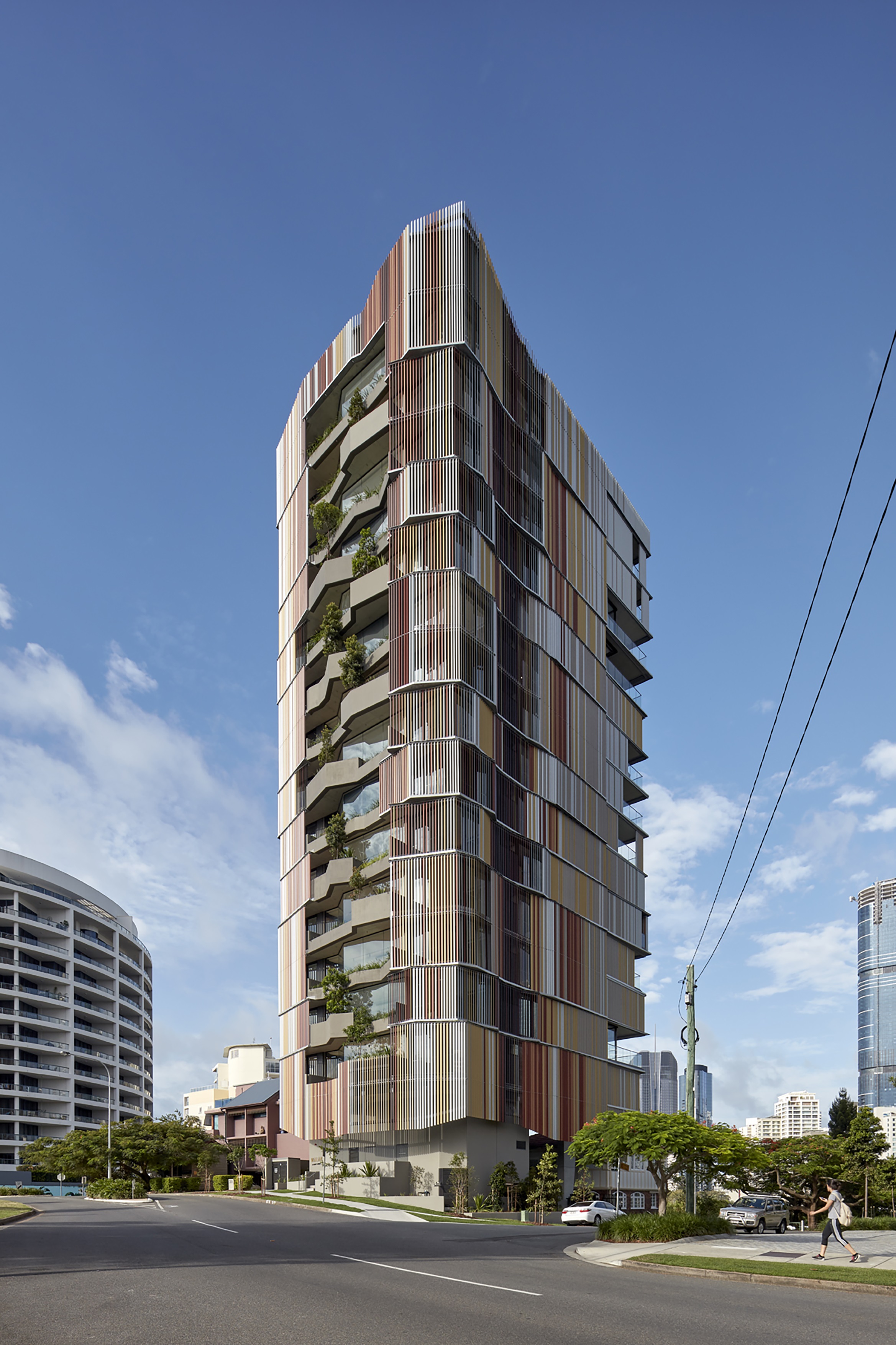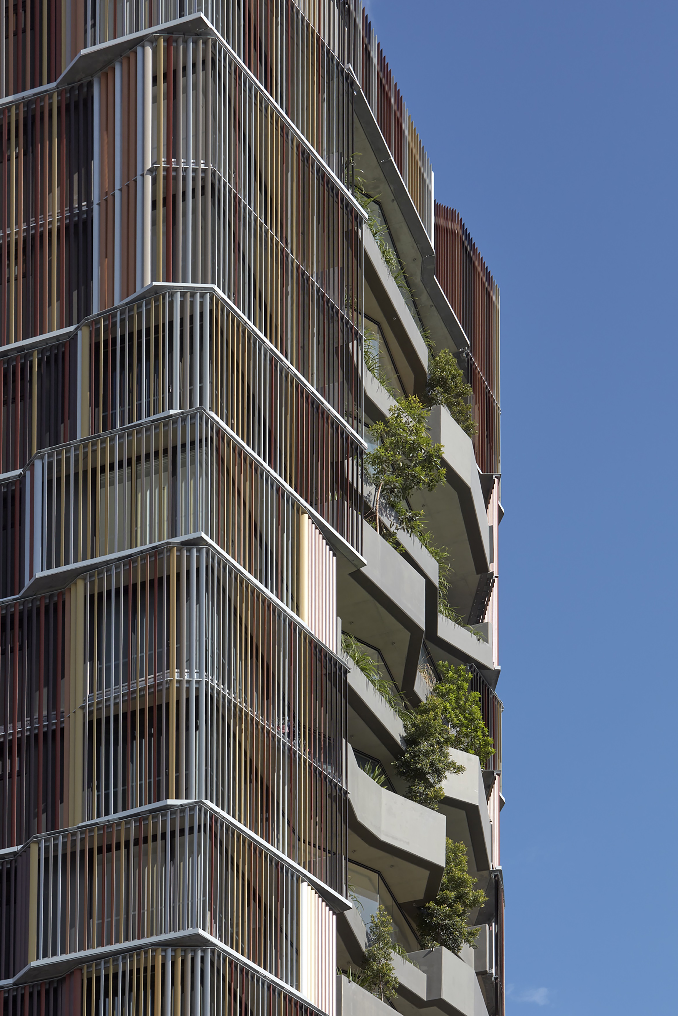 The Bureau Proberts designed Walan apartments, perched along the clifftop of Brisbane’s Kangaroo Point, used Dulux Electro® Powder Coatings to protect the stunning louvred façade, but importantly to also complement the engrained colour pallet of the Kangaroo Point rock face.