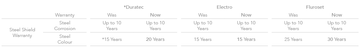 * Duratec Intensity – was 10 Year Colour warranty, now 15 Years
