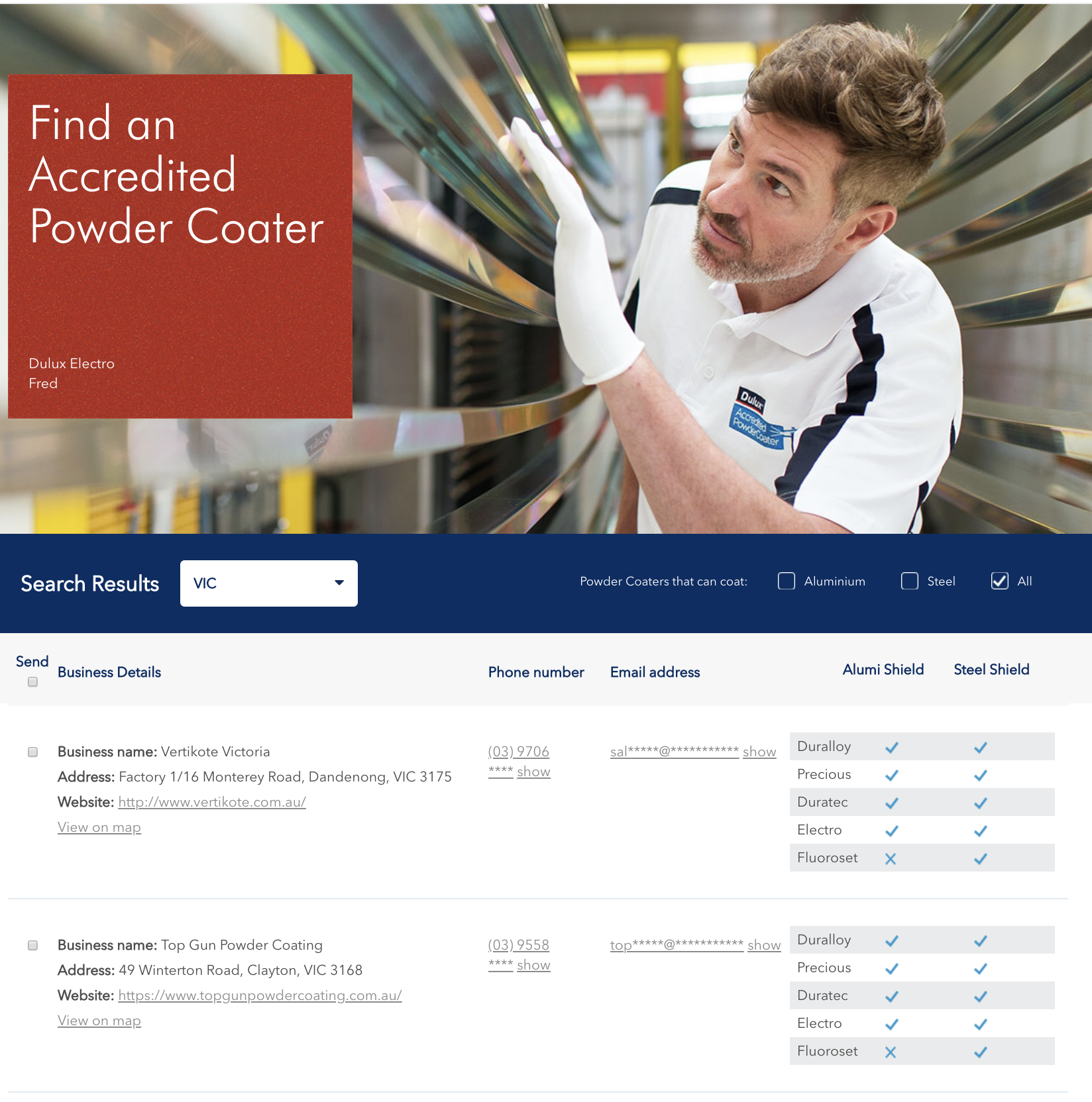 - Applicator – Find our Dulux Accredited TM Powder Coaters more easily through our new search tool, and understand just why Dulux trusts them.