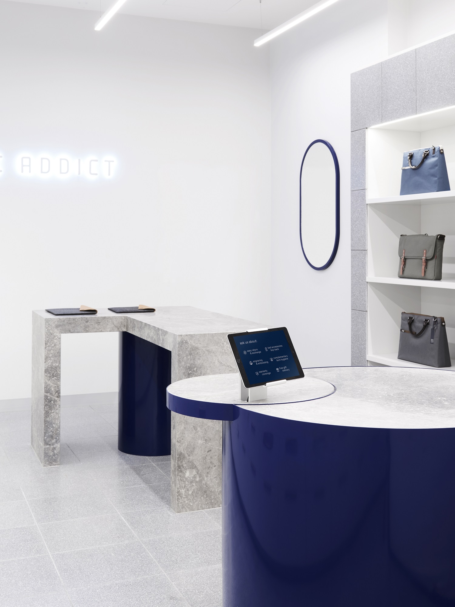 “As Mac Addict’s audience is largely focused on technology’s early adopters, the store itself had to be fashion forward,” explained Claire Evans, Creative Director at Larritt-Evans. “It not only had to complement the brand’s personality, but also its physical location in Melbourne’s iconic QV laneway – something we successfully achieved by using carefully considered materials.”