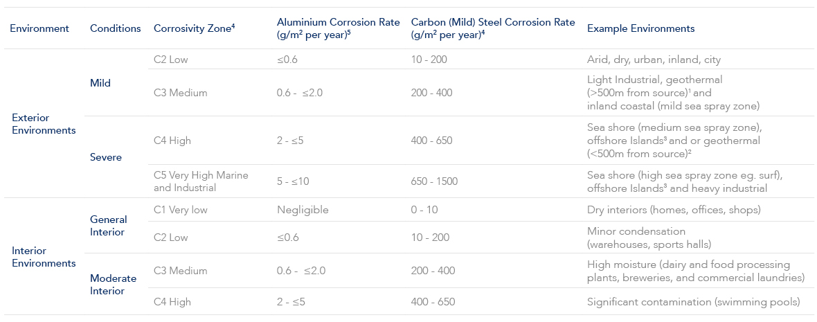 Use the following table to help identify the product and system choice you have for the perforated or expanded aluminium on your project. Refer to the conditions information to determine the environment that your project will be exposed to.