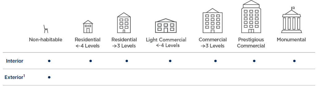 Use the following table to help identify where Surreal Effects can be applied on steel projects. Refer to the conditions information to determine the environment that your project will be exposed to.